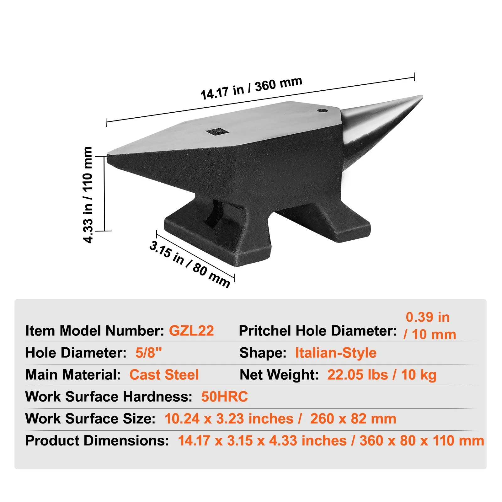 - Durable Construction: Crafted from high-quality cast steel with an 800C heat treatment, this anvil achieves 50HRC hardness for exceptional impact resistance and corrosion protection.